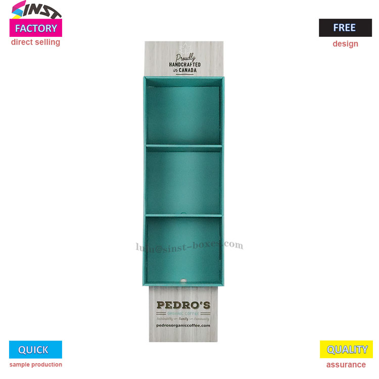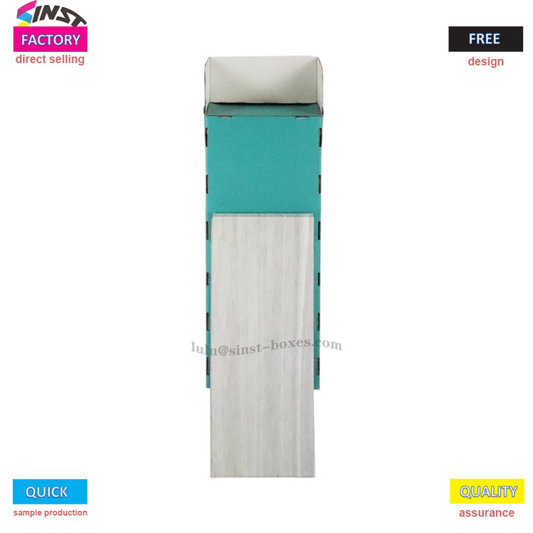 Rak tampilan corrugated Stationery iki utamane digunakake kanggo nampilake macem-macem barang tulis. Awak sakabèhé wangun persegi dowo lan digawe saka kayu entheng utawa bahan serat kayu imitasi putih, kang katon sumilir lan tekstur. Telung kompartemen panyimpenan sing mbukak wis dirancang khusus ing ngarep, kanthi warna ijo utawa biru-ijo, sing cocog kanggo ngurutake lan nyimpen alat tulis. Apa buku, macem-macem notebook, utawa macem-macem gaya pena, kabeh bisa diselehake kanthi aman. Menapa malih, rak tampilan iki nduweni struktur trapezoid sing rada maju, supaya luwih gampang kanggo nggayuh lan nyelehake barang kasebut tanpa gaweyan.