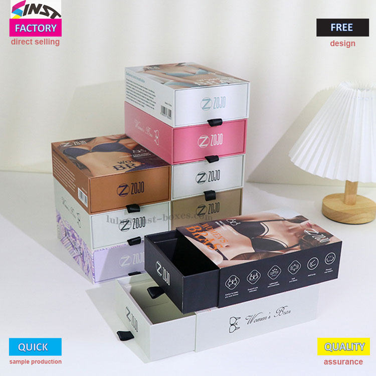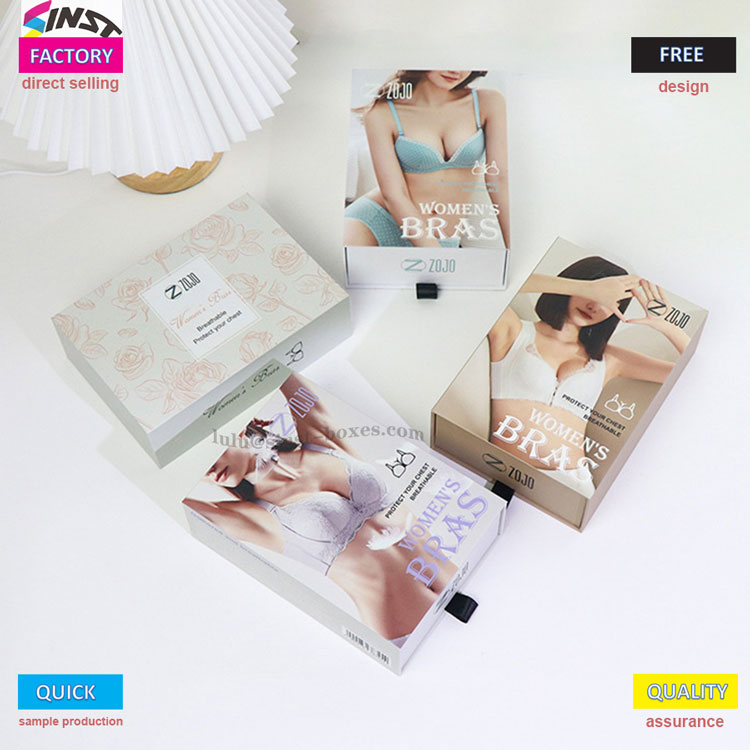 Box hadiah bra bra iki fokus ing layanan kustomisasi eksklusif. Kothak hadiah ngetrapake struktur gaya laci, kalebu macem-macem gaya katon kayata tampilan model lan pola, lan cocog kanggo posisi produk bra sing beda. Tutup model wanita print ngagem gambar efek, kanthi visual nuduhake pesona saka bra; Cocog warna sing sugih, nuduhake busana dhuwur-end. Saka kustomisasi ing produk rampung, saben detail nggawe upacara sing cerdas kanggo panampa, nggawe pilihan kualitas kanggo preian, ulang taun, utawa hadiah merek.