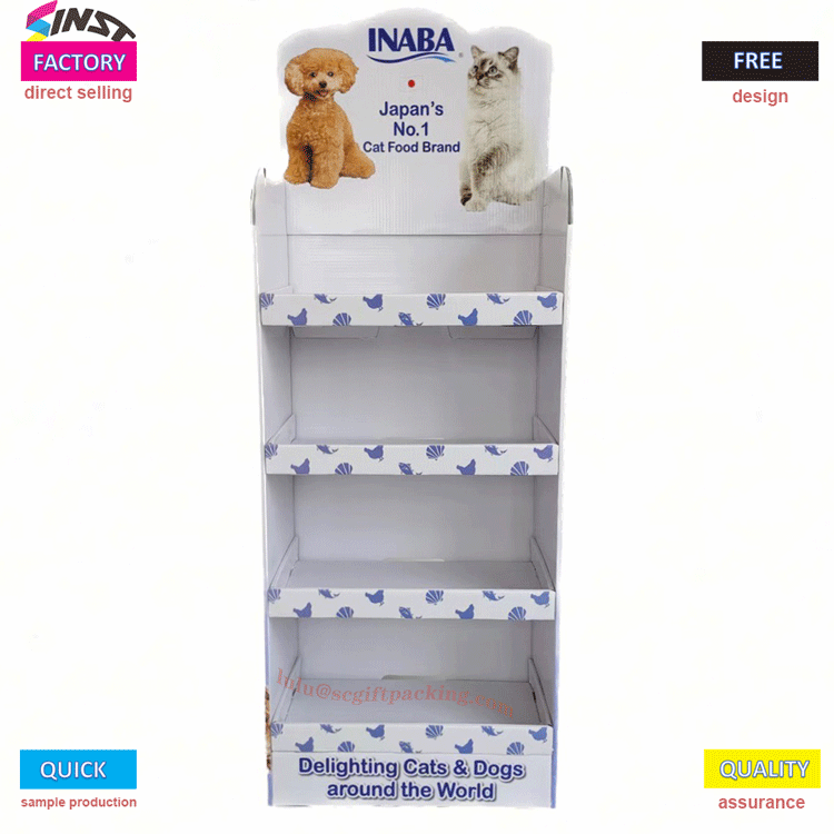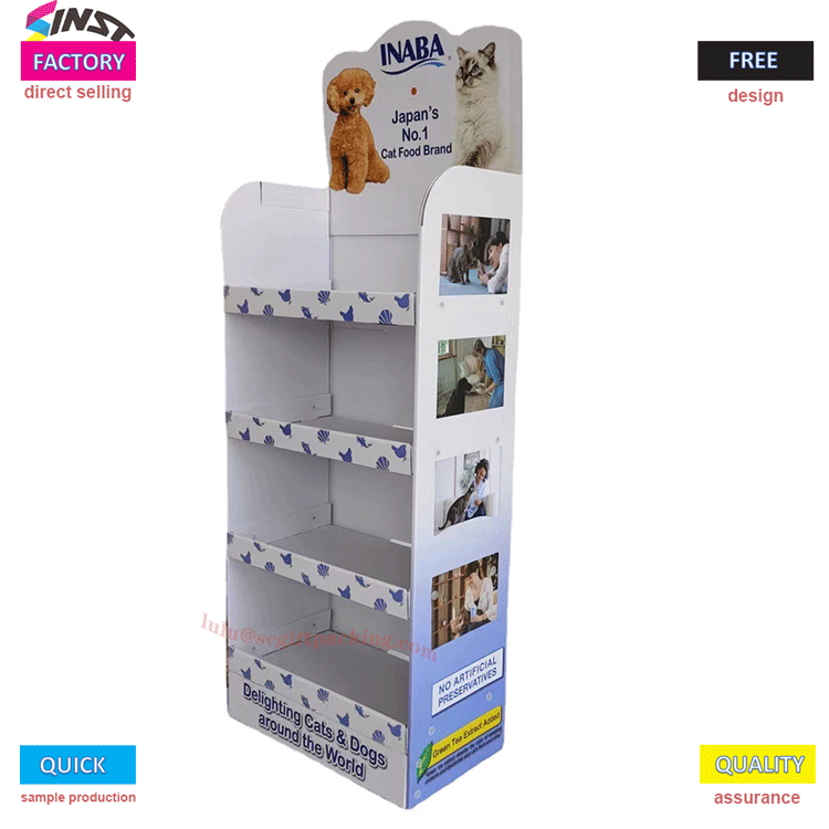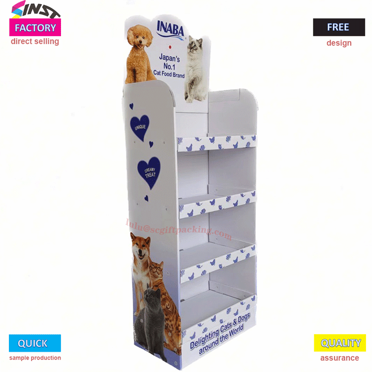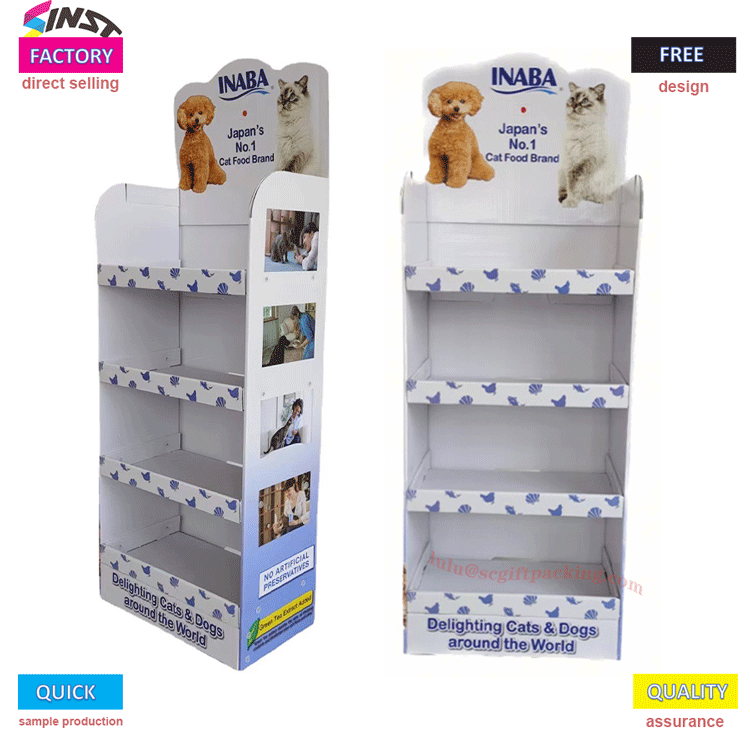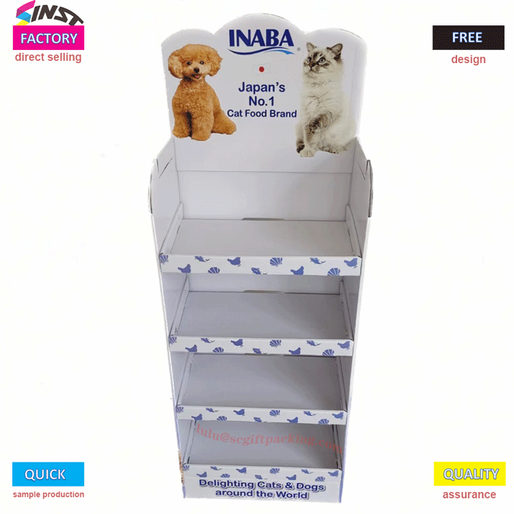 Sinst Foldable rak tampilan lantai karton kanggo Penyetor pangan pet Fitur Lan Aplikasi