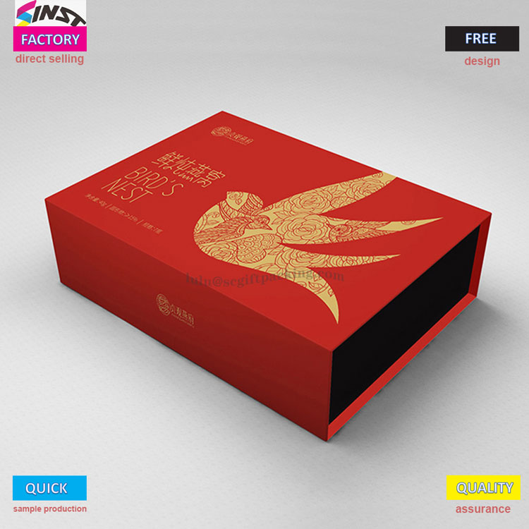 Box kesehatan banyu kesehatan paling dhuwur ing banyu manuk bawah iki adhedhasar sing cocog karo warna abang lan ireng mewah. Kothak njaba digawe saka karton kaku kanthi cara mbukak magnetik lan desain nutup. Yen kothak dibukak, lapisan busa sing tliti ing njero ruangan wis ana. Enem partisi mandiri kanthi tepat kanggo saben botol siap kanggo mangan sarang manuk, sing duwe kaendahan visual lan perlindungan praktis. Apa adol ing mall utawa menehi hadiah kanggo kulawarga lan kanca-kanca kanggo nyritakake perasaan, kabeh nuduhake gaya.
