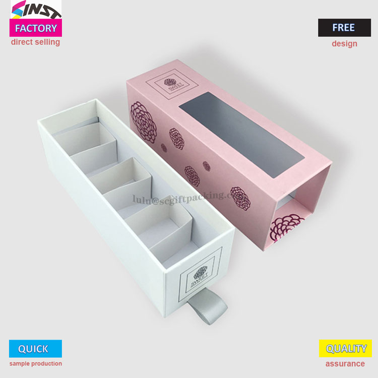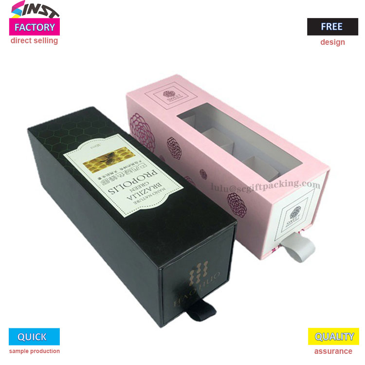 Paket kothak Sliding laci laci lacing iki kanggo minyak penting ing desain kompartemen lan jendhela transparan sing ngidini visibilitas papat ing kothak tanpa kudu mbukak tutup; Nalika kothak kaping pindho ireng lan jambon dilebokake ing sisih, ingenu saka desain bisa dideleng: kothak ireng duwe huruf emas sing ana ing awak kanggo tampilan tekstur, lan cincin pulisi ireng ing sisih bisa ditarik mbukak; Model pink ing jendela transparan, sing bisa langsung ndeleng tank khusus kanggo insence Contoh - Inti Lotion, 10mL Intine dibungkus kanthi rapet. Saka conto inti kanggo alat, divisi kasebut jelas lan ora ana gandhengane.