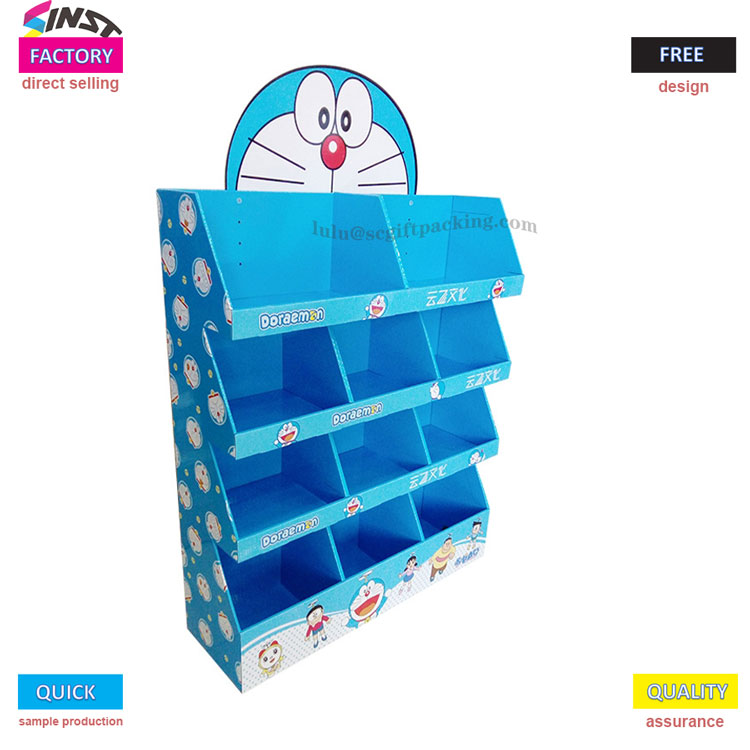 Rack Shopping Campuran Cardboard Cardboard Cardboard iki sampurna kanggo pasar, toko penak, utawa bakeri, nampilake grafis biru lan kartun sing padhang. Desain kothak lapisan lapisan nganggo divider sing bisa diatur ngidini organisasi cookie fleksibel, ngrawat, utawa jajanan, maksimal efisiensi ruang ruang.