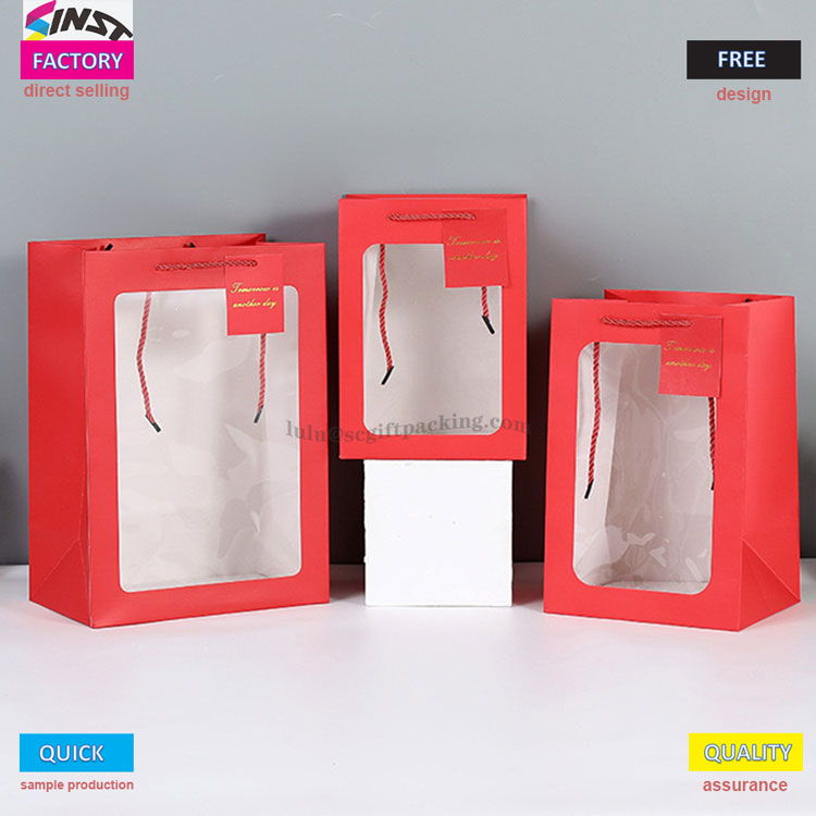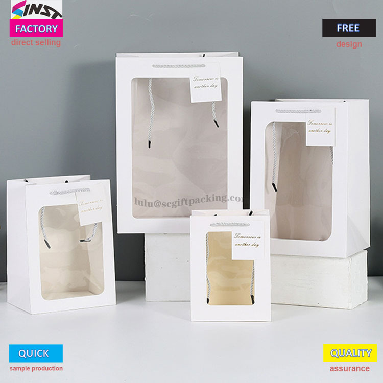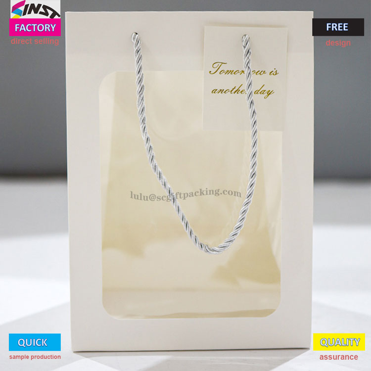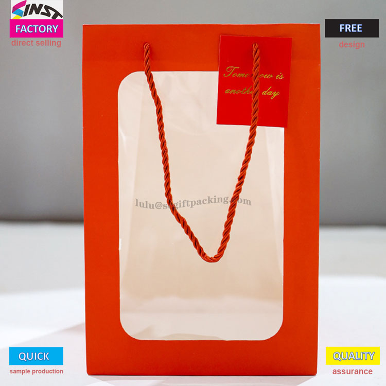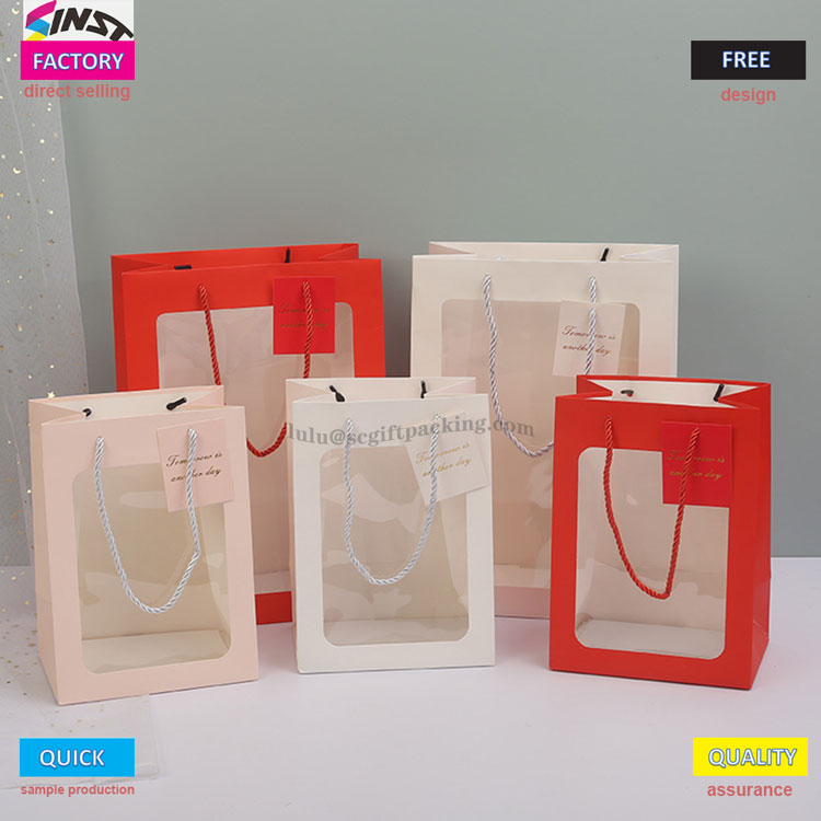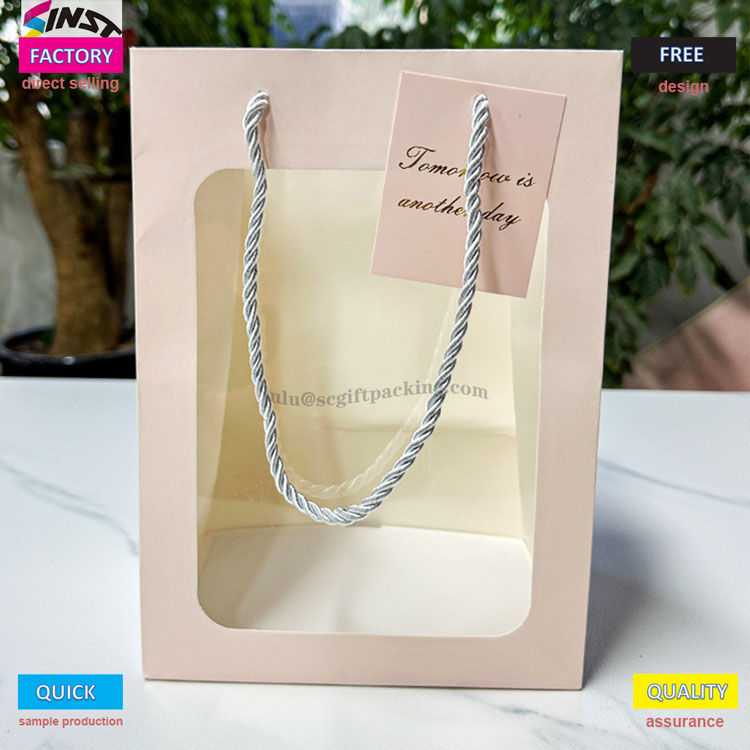Apa sampeyan wedi mbukak kothak buta nalika menehi hadiah? Tas tangan iki dilengkapi desain jendela transparan, sing ngidini garis burut hadiah supaya bisa ditampilake kanthi jelas lan menehi genggeman sing nyaman, nggawe sorotan visual; Desain jendhela PVC transparan bisa nggambarake gaweyan lan hadiah sing enak kayata roti, cookie, macarons, dll ing jendhela pambuka, lan. Rahayu tulisan tangan kanthi cepet ngisi swasana kanthi upacara eksklusif. Hadiah kanggo ulang taun, preinan, lan ulang taun bisa diwenehake kanthi tampilan lan niat. Mesthi wae, tas tote kembang uga dadi pilihan sing apik kanggo panyimpenan saben dina.